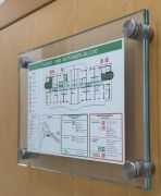 Diese Pläne werden an Stellen im Gebäude aufgehängt, an denen viel Personenverkehr herrscht, z.B. an Eingängen, in Treppenhäusern und neben Aufzügen.