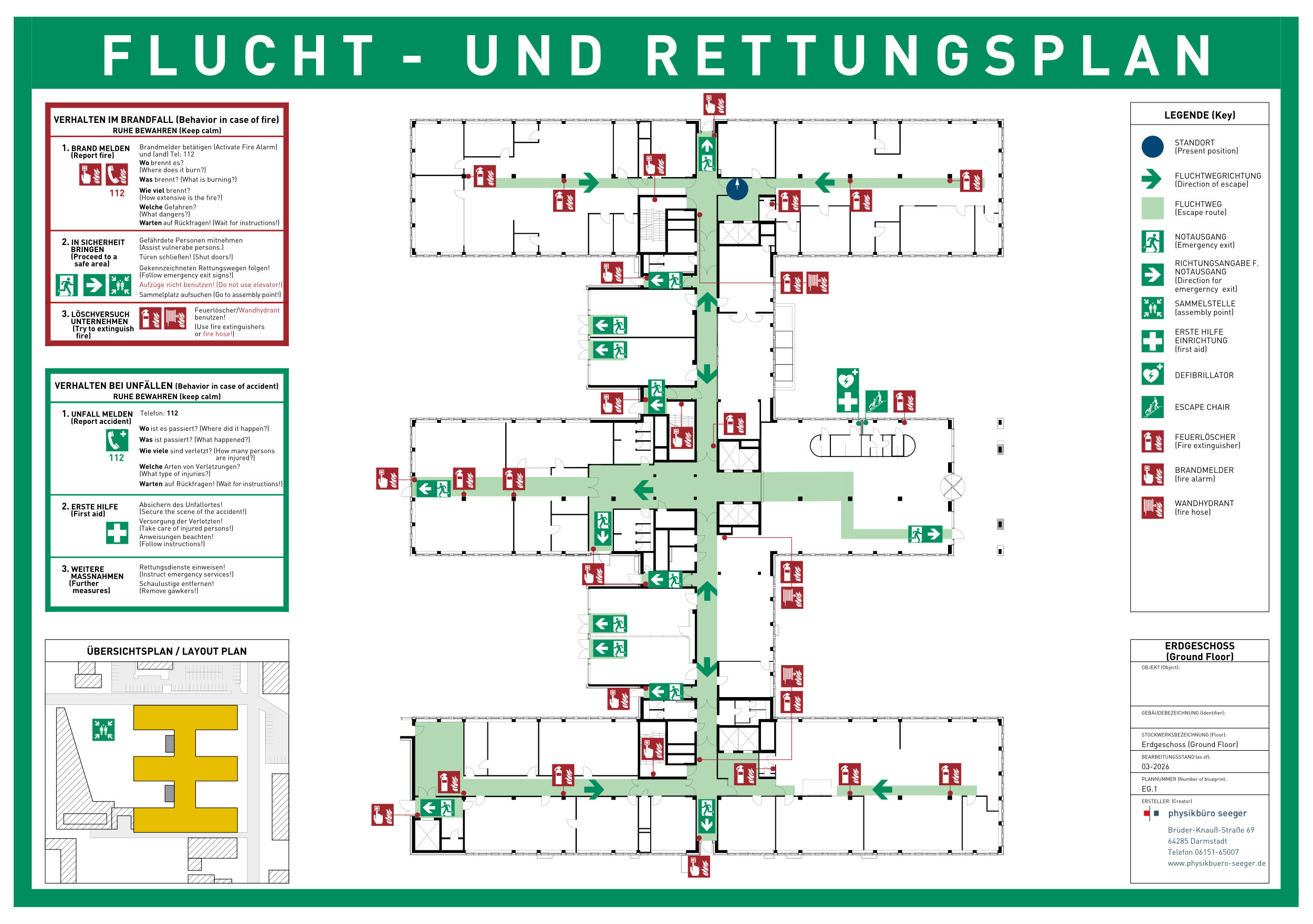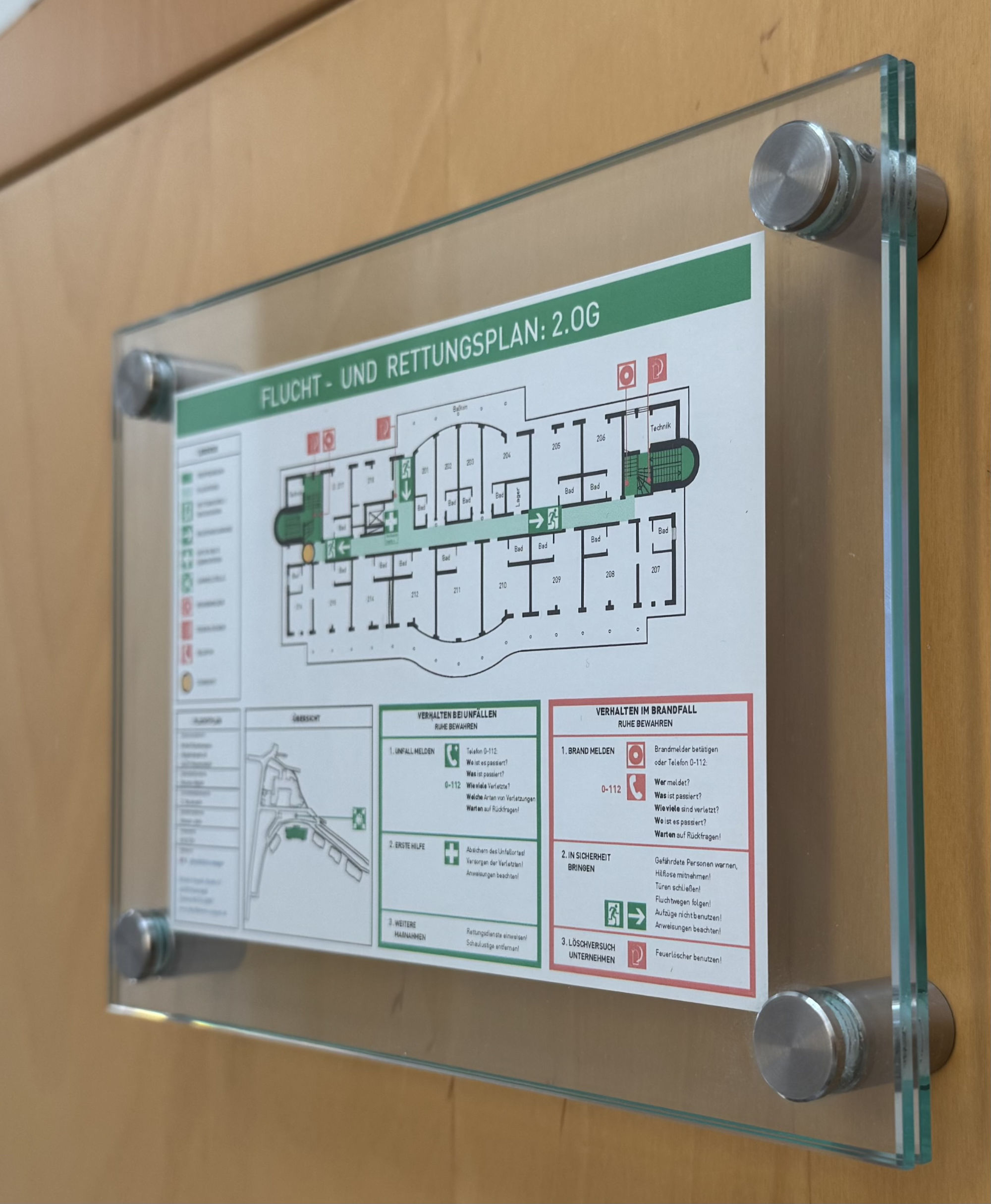- Auf Wunsch montieren wir die Fluchtpläne im Gebäude fachgerecht an den notwendigen Orten