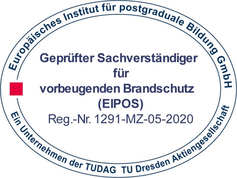 - 2020: Herr Seeger absolviert die Weiterbildung „Sachverständiger für vorbeugenden Brandschutz(EIPOS)"